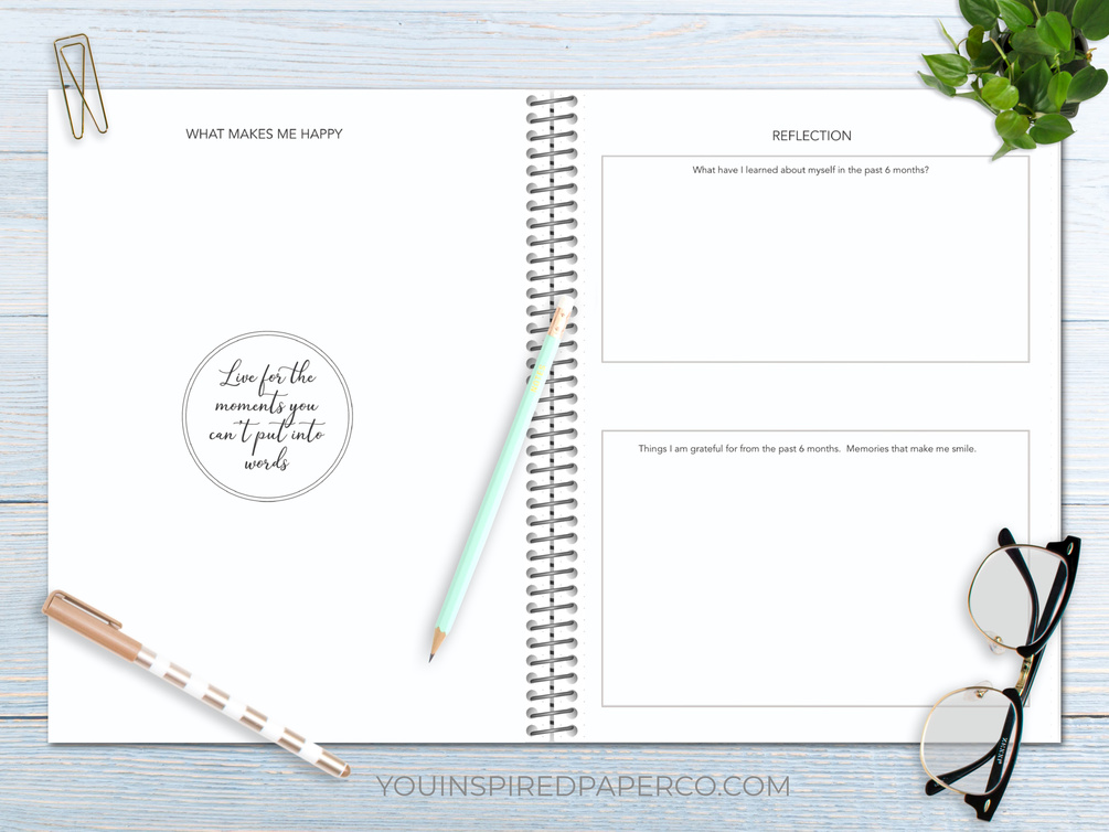 *Pages for goal setting, reflection, gratitude, habits, building routines, creating vision boards, bucket lists, year-at-a-glance and master to-do lists.